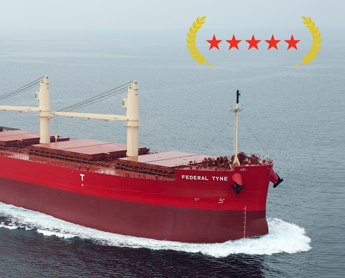À la fin octobre, le Federal Tyne a obtenu une cote parfaite, soit cinq étoiles, de RightShip selon leurs trois paramètres de validation : 5 étoiles en classement risque, 5 étoiles en classement environnemental et un classement A+ en émissions de gaz à effet de serre (GES). Seuls 26 navires parmi les quelque 18 000 vraquiers présentement en service ont une cote de 5 étoiles en matière de risque et d’environnement, et six de ces navires appartiennent à Fednav. Le Federal Tyne, qui se démarque par sa note parfaite A+ en ce qui a trait aux émissions de GES, est l’un des deux seuls vraquiers au monde à posséder cette distinction.