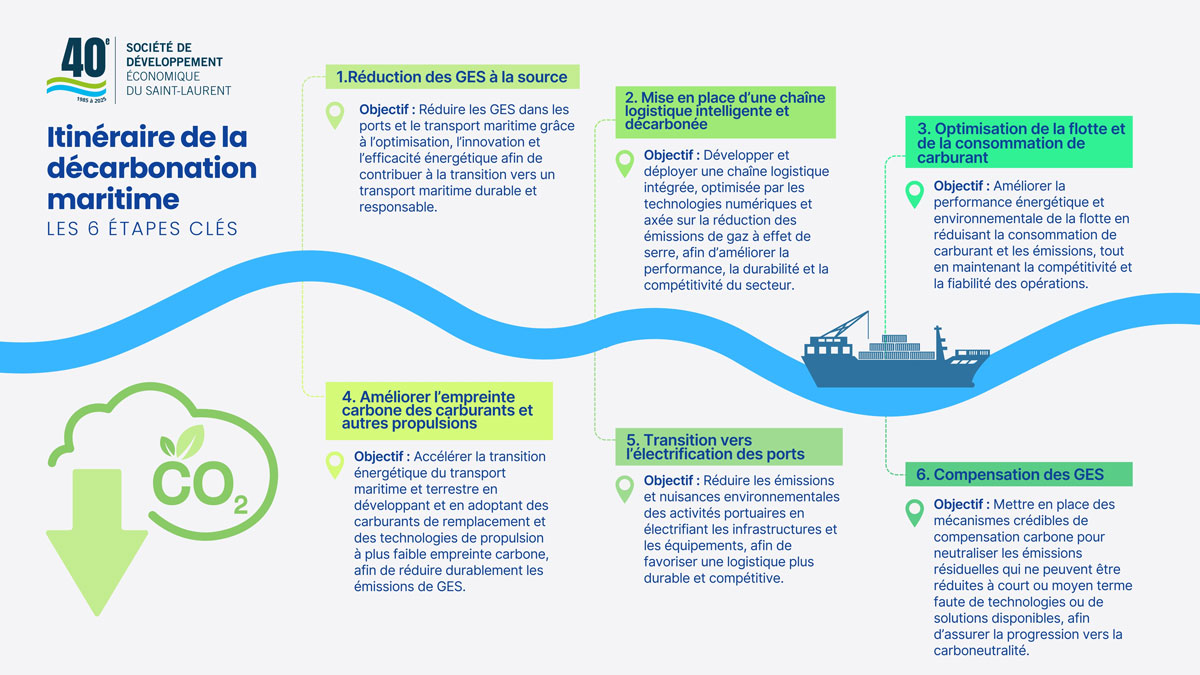 La Société de développement économique du Saint-Laurent (SODES) joue un rôle clé dans l'élaboration d'un plan ambitieux de décarbonation de l'industrie maritime québécoise. En collaboration avec des firmes d’experts, la SODES a mandaté la réalisation d'études stratégiques qui établissent un cadre clair pour réduire significativement les émissions de gaz à effet de serre dans le secteur maritime d'ici 2030 et 2050, conformément aux objectifs de l'Organisation maritime internationale (OMI).