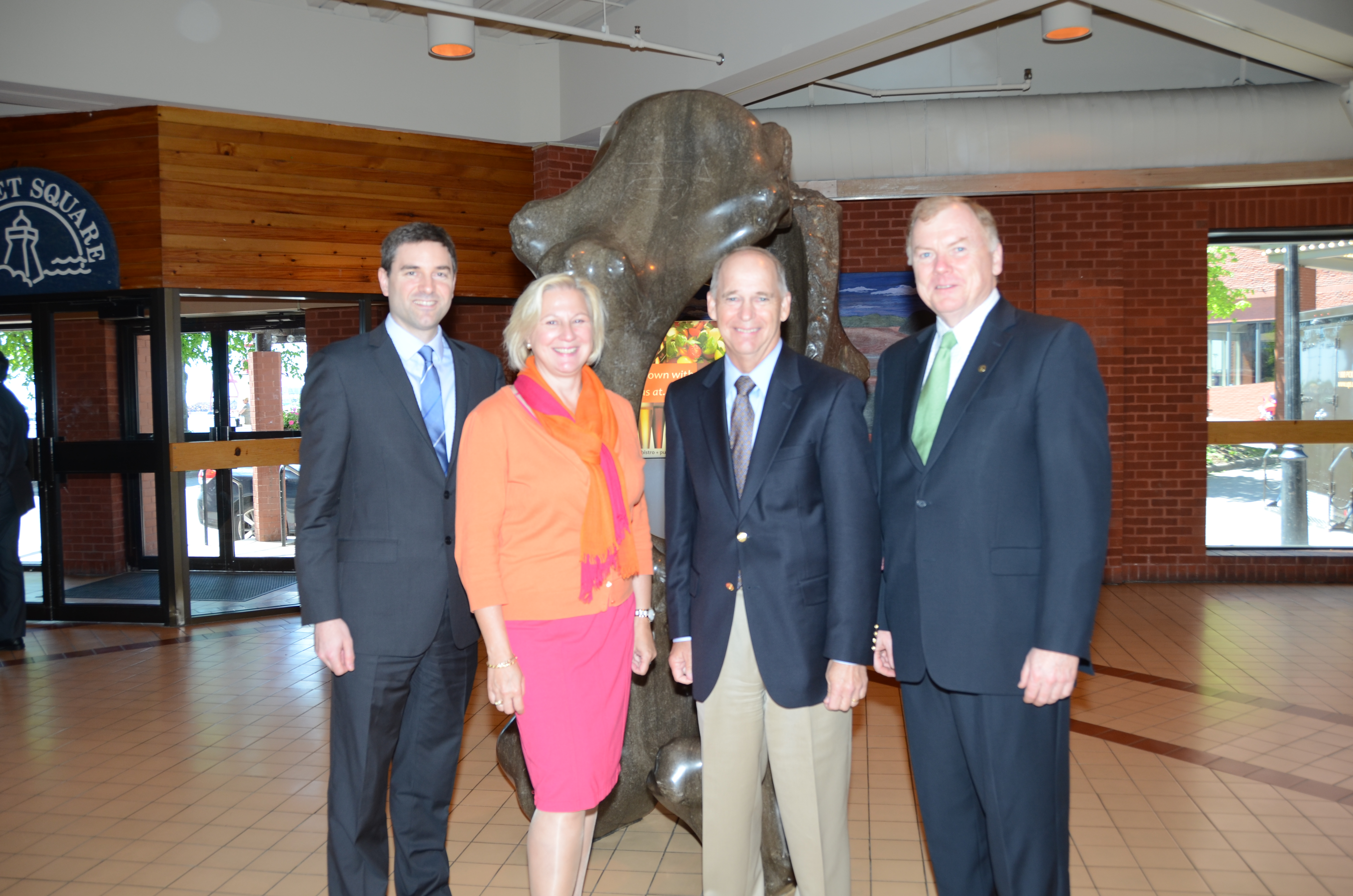 Au cours de la dernière année, l’Alliance verte a signé des ententes pour promouvoir la performance environnementale des ports avec d’une part l’American Association of Port Authorities et d’autre part l’Association des administrations portuaires canadiennes, confirmant l’engagement de l’industrie portuaire nord-américaine envers le développement durable. Sur la photo : David Bolduc, directeur général de l’Alliance verte; Wendy Zatylny, présidente de l’AAPC; Kurt Nagle, président et chef de la direction de l’AAPA et Raymond Johnston, président de l’Alliance verte.